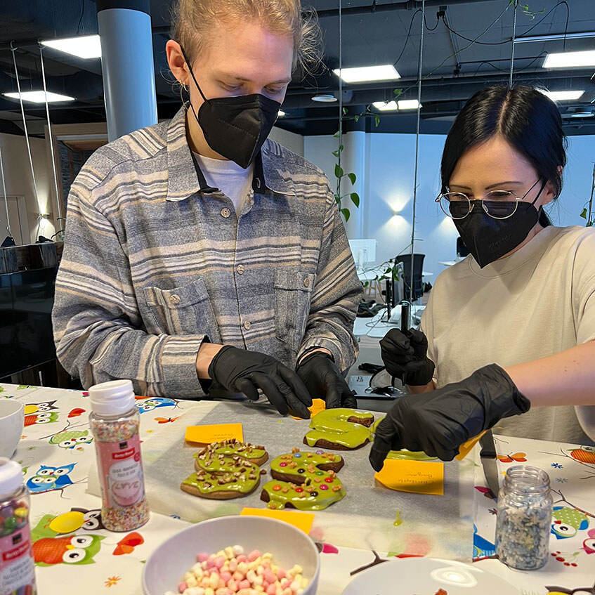 Schliesslich haben wir über 100 Cookies gemäss den Konfigurationen gebacken, dekoriert und geliefert. Für die nötige Weihnachtsstimmung auf der Website haben unsere Designer:innen gesorgt, während unsere Entwickler:innen anschliessend mit Hilfe von Firebase und Vue.js die Seite realisiert haben.